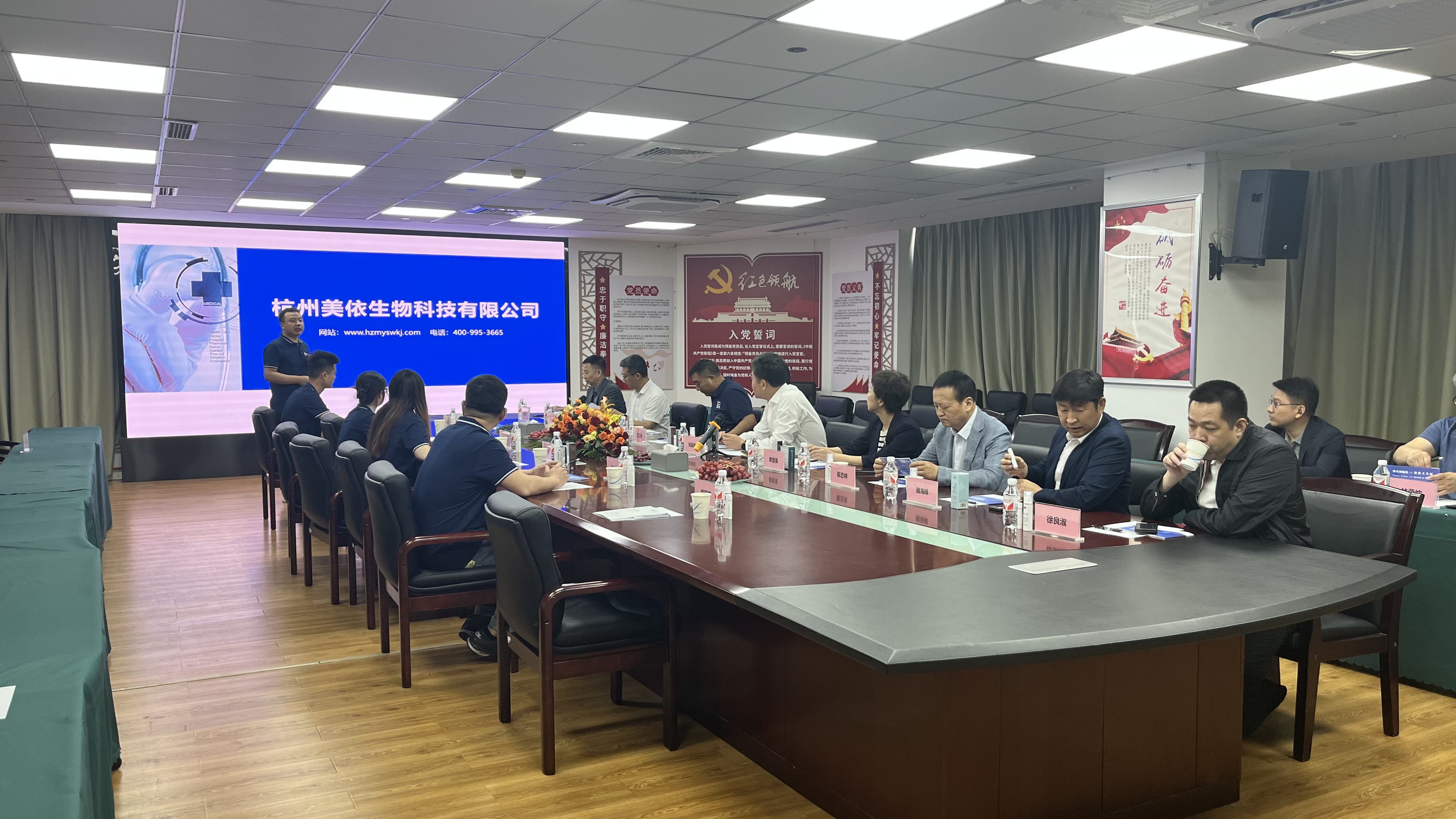 為推進“以會招商、以商招商”戰(zhàn)略,推動杭州市與秦皇島市的戰(zhàn)略合作關(guān)系。2025年4月17日,秦皇島市委常委、組織部部長、統(tǒng)戰(zhàn)部部長張振鋒,統(tǒng)戰(zhàn)部常務副部長單慧英,統(tǒng)戰(zhàn)部副部長王志民及優(yōu)秀企業(yè)家代表一行,赴杭州美依生物科技有限公司(以下簡稱"美依生物")開展調(diào)研考察。雙方圍繞大健康產(chǎn)業(yè)技術(shù)研發(fā)、成果轉(zhuǎn)化及區(qū)域合作等議題展開深入交流,共謀產(chǎn)學研協(xié)同發(fā)展新機遇。