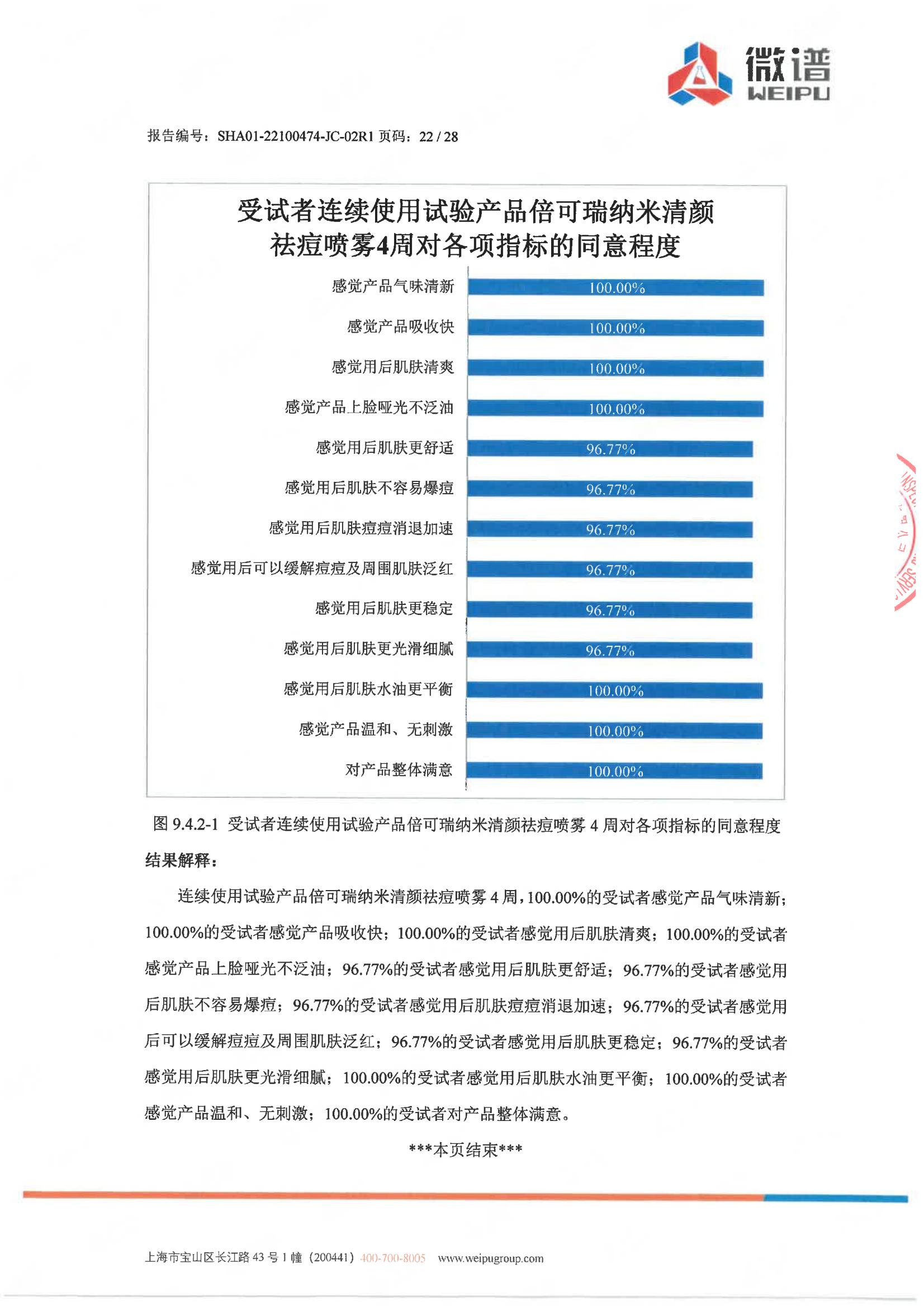 倍可瑞®納米清顏祛痘噴霧功效報告2