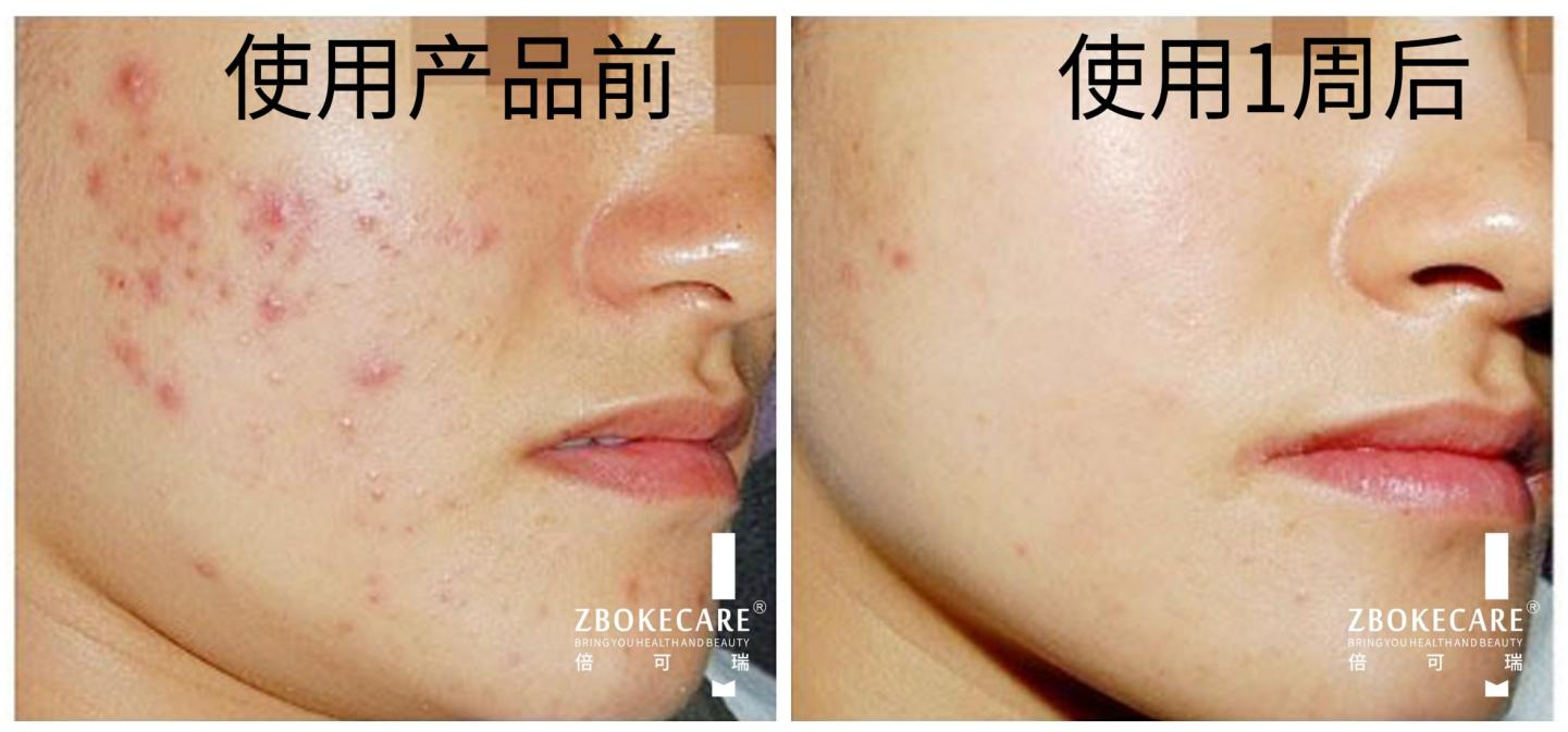 使用后狀態(tài):使用1周后,痘痘消退,痘印痕跡消除,皮膚變光滑、細(xì)膩,痘痘不再反復(fù)生長(zhǎng)